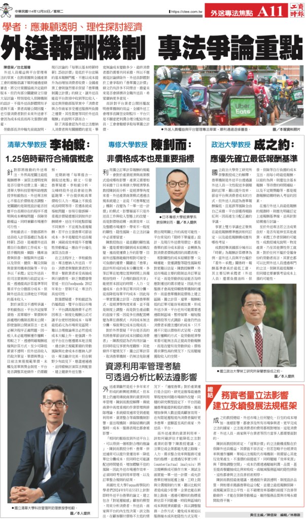 外送專法焦點 1-4》日本專修大學教授陳釗而:非價格成本也是重要指標